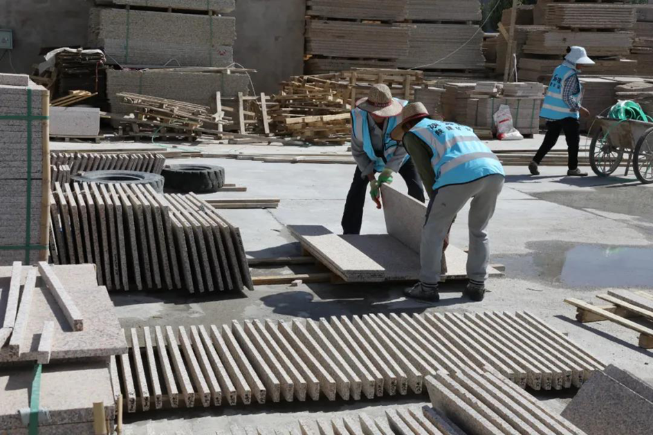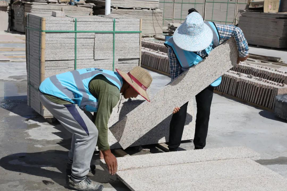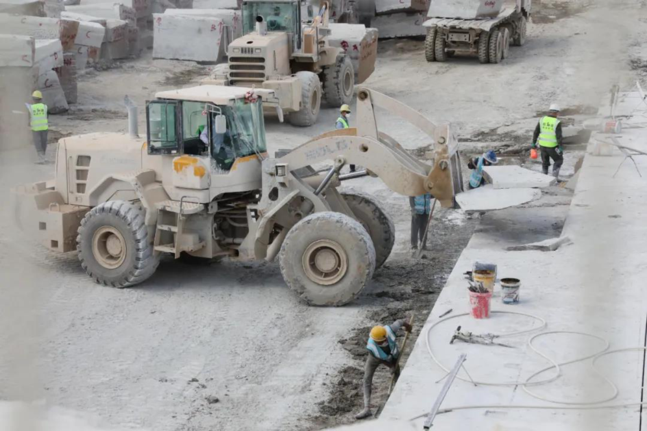 烈日炎炎下,旷工在作业面开采荒料