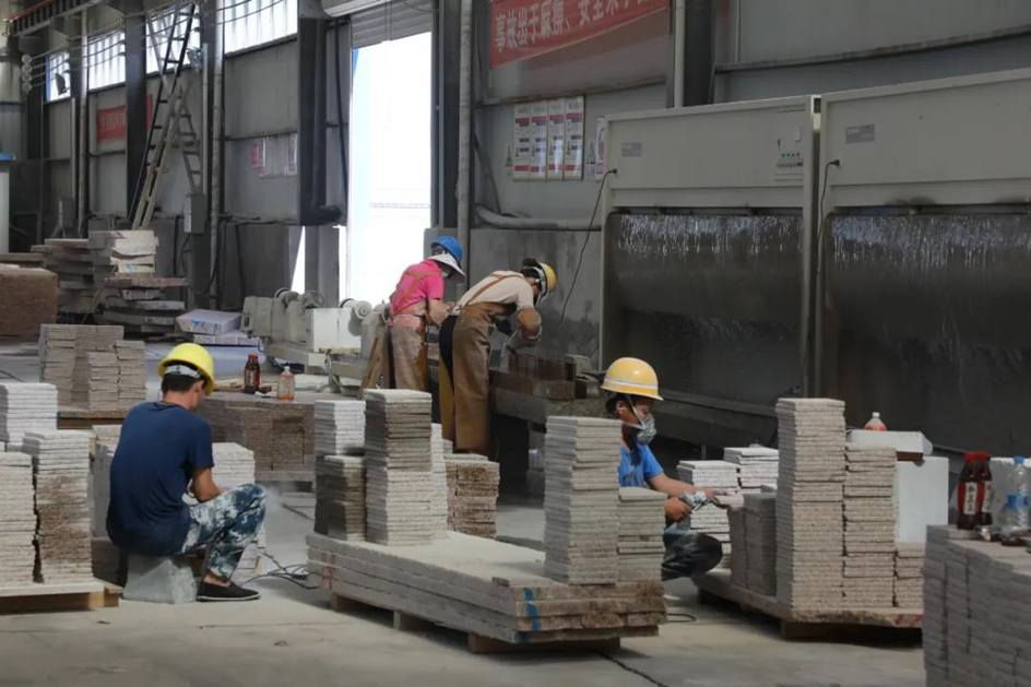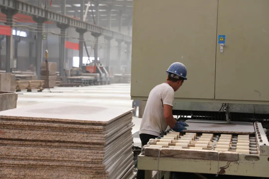 磨光机操作工人对板材进行磨光加工