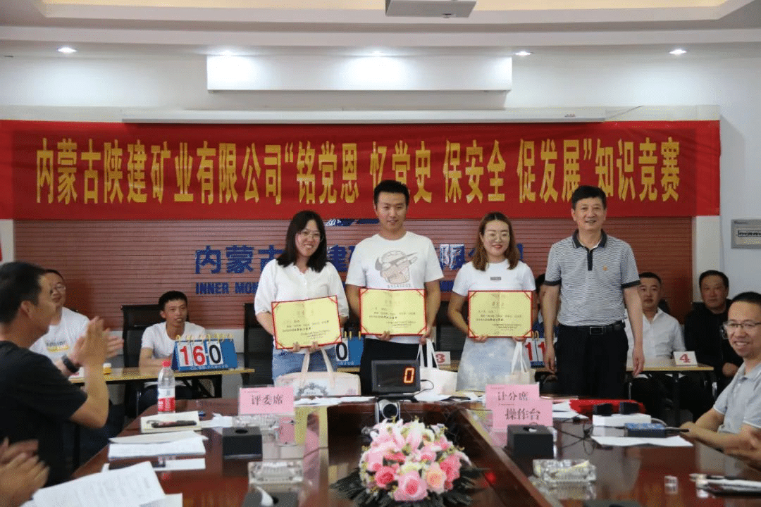6月24日,内蒙陕建矿业公司组织开展了“铭党恩、忆党史、保安全、促发展”为主题的综合知识竞赛活动,以部门为单位的4个代表队上场竞赛,全体员工现场观看。