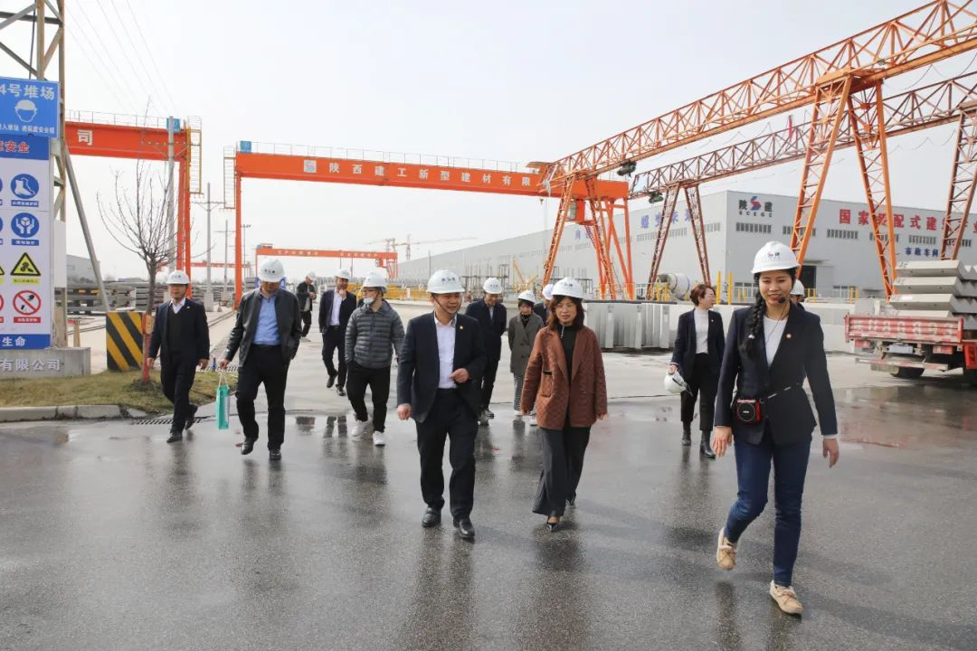 会前,双方参观了西咸新区装配式建筑产业基地,实地考察了产品样板展示区、PC生产车间、市政车间,观看了集团、新型建材公司宣传片。