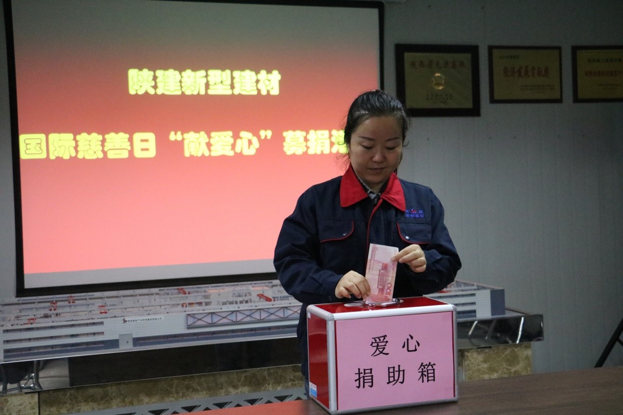 9月5日是国际慈善日,上午10点,新型建材公司举行了献爱心捐款活动。